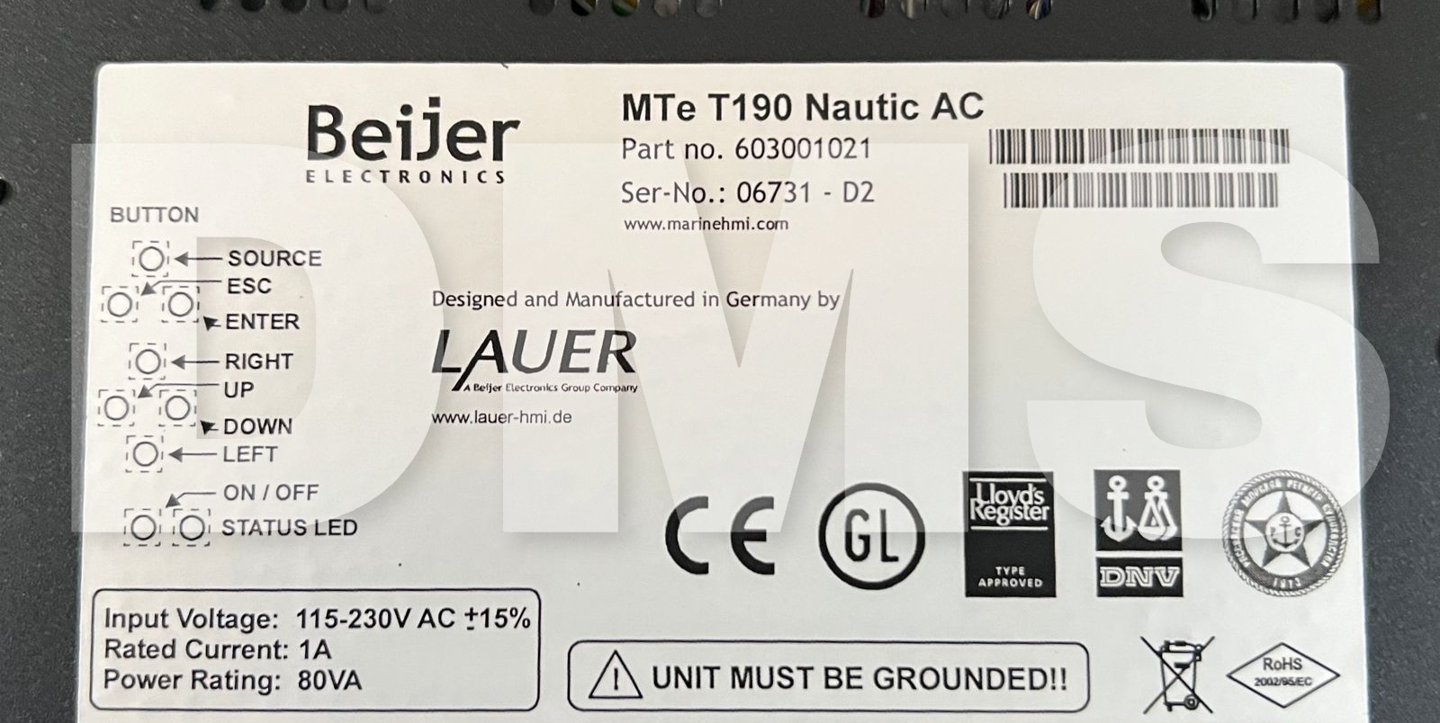 BEIJER ELECTRONICS MTE T190 NAUTIC AC HMI