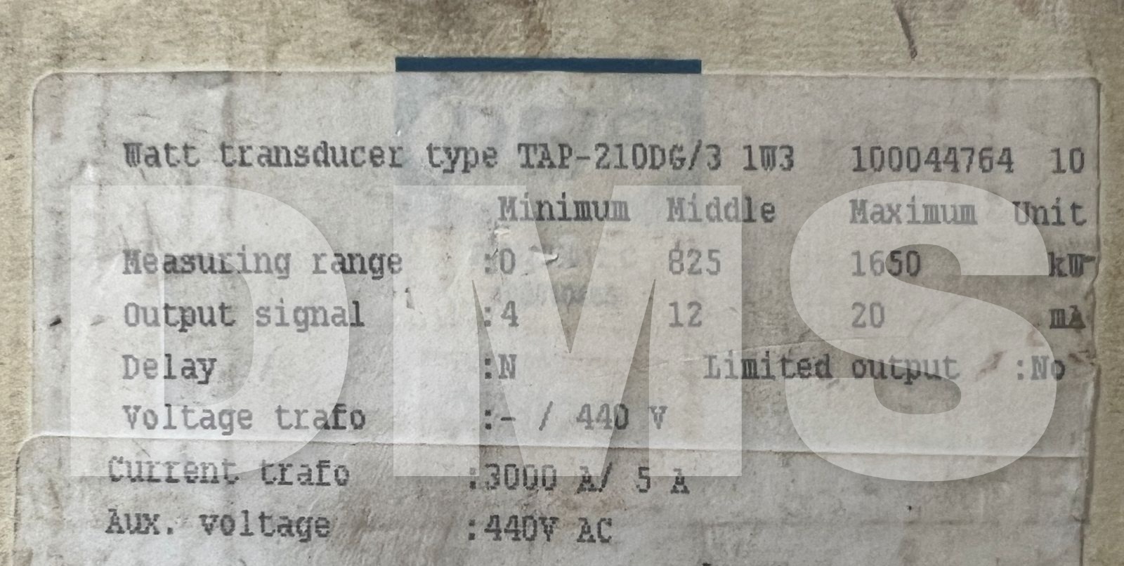 DEIF TAP-210DG/3 TRANSDUCER INWATT 1W3 100044764.10 440V AC