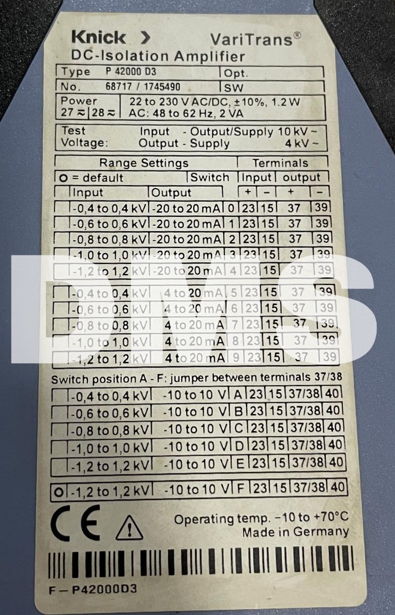 Knick VariTrans P 42000 D3 High Voltage Transducer Dc-isolation Amplifier (NEW / USED)