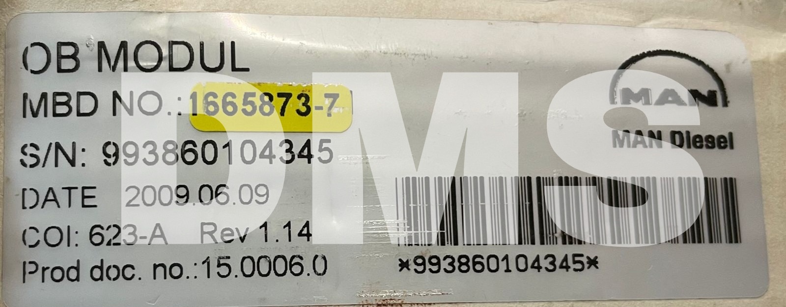 MAN B&W MAN DIESEL & TURBO OB MODUL MBD NR 1665873-7 (NEW/USED)