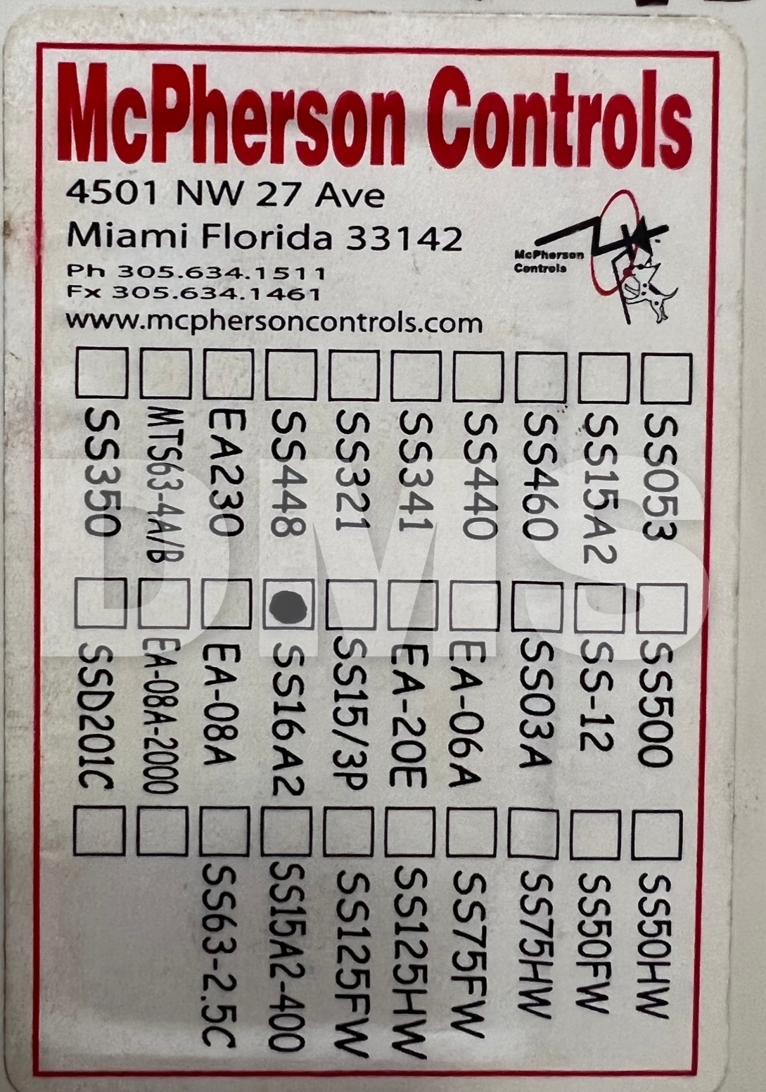 MCPHERSON CONTROLS SS16A2 AUTOMATIC VOLTAGE REGULATOR