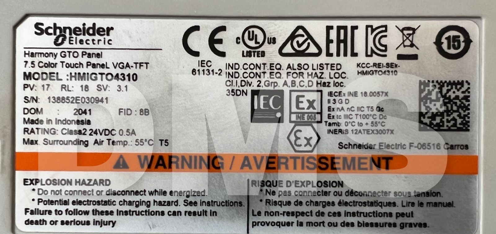 SCHNEIDER ELECTRIC MAGELIS HMIGTO4310 HARMONY GTO TOUCH PANEL VGA-TFT