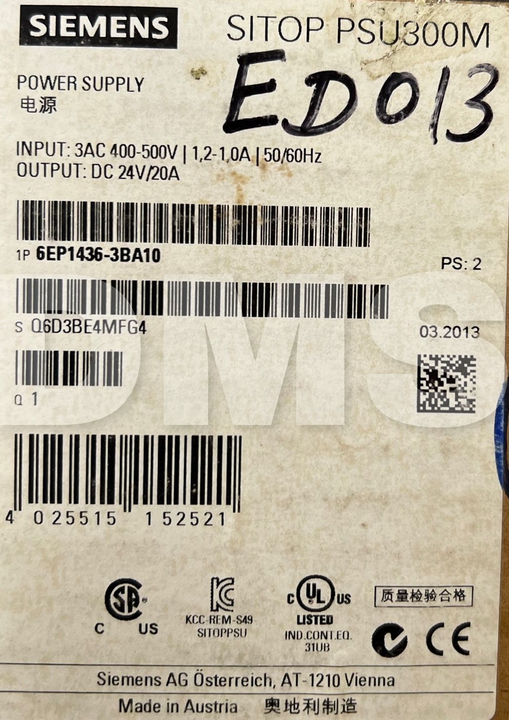TYPE: SIEMENS SITOP PSU300M 6EP1436-3BA10