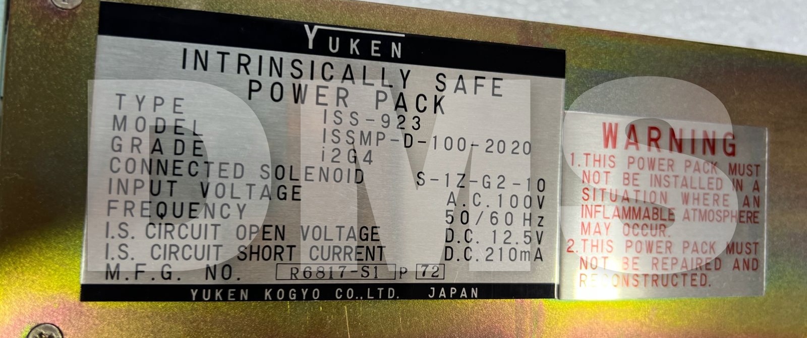 YUKEN INTRINSICALLY SAFE POWER PACK ISS 923